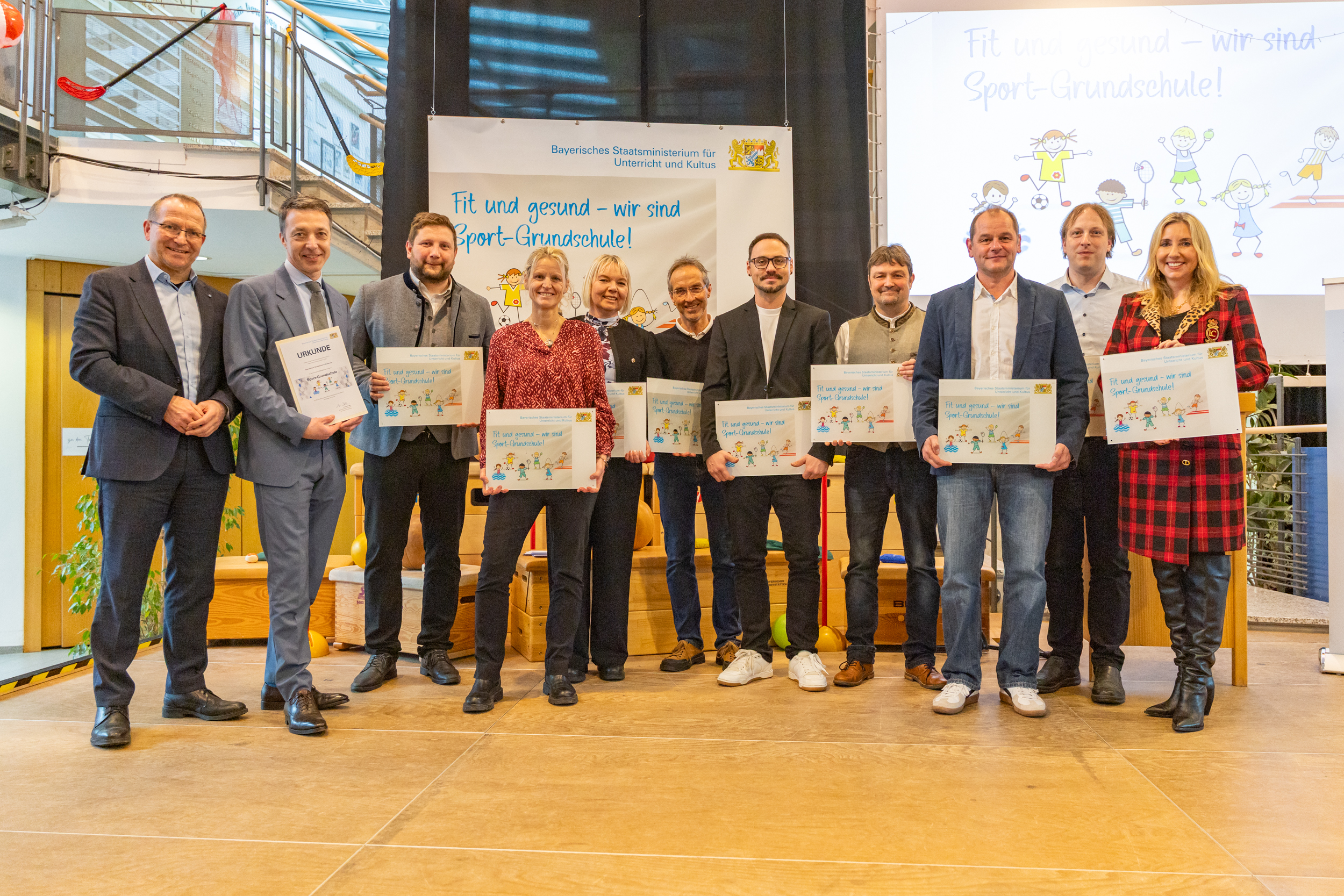 Wir freuen uns sehr über eine besondere Auszeichnung: Am 11. Februar 2026 wurde unsere Grundschule offiziell mit dem Profil „Sport-Grundschule“ geehrt. Die Verleihung erfolgte durch Anna Stolz. Stellvertretend für unser Team nahm Herr Zimmermann die Auszeichnung entgegen. Besonders stolz sind wir darauf, dass wir im Schulamtsbezirk Landsberg im Schuljahr 2025/2026 die einzige ausgezeichnete Schule sind. In ganz Oberbayern erhielten 45 Grundschulen diese Anerkennung.Für uns ist Bewegung kein Zusatz, sondern ein selbstverständlicher Bestandteil unseres pädagogischen Alltags. Regelmäßiger Schwimmunterricht, vielfältige Sportangebote und die Teilnahme an Wettbewerben gehören ebenso dazu wie unsere feste Bewegungs-Halbestunde im Tagesablauf. Mit der Einführung der aktiven Pause und unseren Pausenkisten schaffen wir täglich bewusst Bewegungsräume. Wir erleben immer wieder, dass Kinder konzentrierter, ausgeglichener und motivierter lernen, wenn sie sich regelmäßig bewegen dürfen.Mit der Auszeichnung ist zudem eine konkrete Förderung verbunden: In allen ersten Klassen erhalten wir zusätzliche personelle Ressourcen für eine weitere Sportstunde. Darüber hinaus stehen uns einmalig 1.000 Euro für neue Sport- und Spielgeräte zur Verfügung.Diese Unterstützung hilft uns, unser sportliches Profil weiter zu stärken und nachhaltige Impulse zu setzen.Ein wichtiger Baustein unseres Gesundheitsprofils ist das Programm GORILLA, das unsere Schülerinnen und Schüler mit kreativen Bewegungsformen und praxisnahen Impulsen für einen gesunden Lebensstil begeistert. Ergänzend arbeiten wir mit der Felix Neureuther Stiftung im Rahmen des Programms „Beweg dich schlau!“ zusammen. Hier wird Bewegung gezielt mit Denk- und Lernprozessen verbunden – ein Ansatz, der hervorragend zu unserem Verständnis von ganzheitlichem Lernen passt.Die Zertifizierung als „Sport-Grundschule“ ist für uns bereits die dritte Auszeichnung innerhalb eines Jahres. Im April 2025 wurden wir gemeinsam mit der Stiftung Playmobil von GORILLA ausgezeichnet, im November 2025 folgte die Anerkennung als „Gute Gesunde Schule“. Diese Entwicklung bestätigt uns in unserem Weg und motiviert uns, diesen konsequent weiterzugehen.Sehr freuen wir uns auch über die Unterstützung unseres Sachaufwandsträgers. Bürgermeisterin Sandra Perzul gratulierte persönlich zur Auszeichnung und kündigte an, dass noch in diesem Jahr der Hartplatz, die Tore und Basketballkörbe sowie die Tartanbahn erneuert werden. Solche Investitionen schaffen optimale Rahmenbedingungen für unsere Kinder und unterstreichen die Bedeutung von Bewegung und Gesundheit in unserer Gemeinde.Wir verstehen Schule als Lebensraum, in dem Lernen, Bewegung und Gesundheit selbstverständlich zusammengehören. Die erneute Auszeichnung erfüllt uns mit großer Dankbarkeit – und sie ist zugleich Ansporn, unser bewegtes Schulprofil weiterhin engagiert für unsere Schülerinnen und Schüler in Dießen zu gestalten.Foto: Fabian Gebert/StMUK
